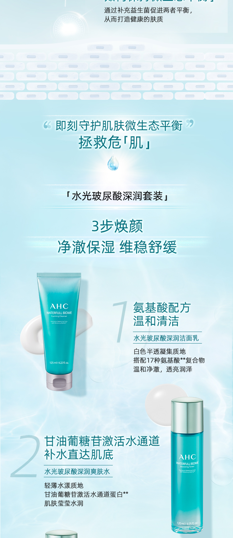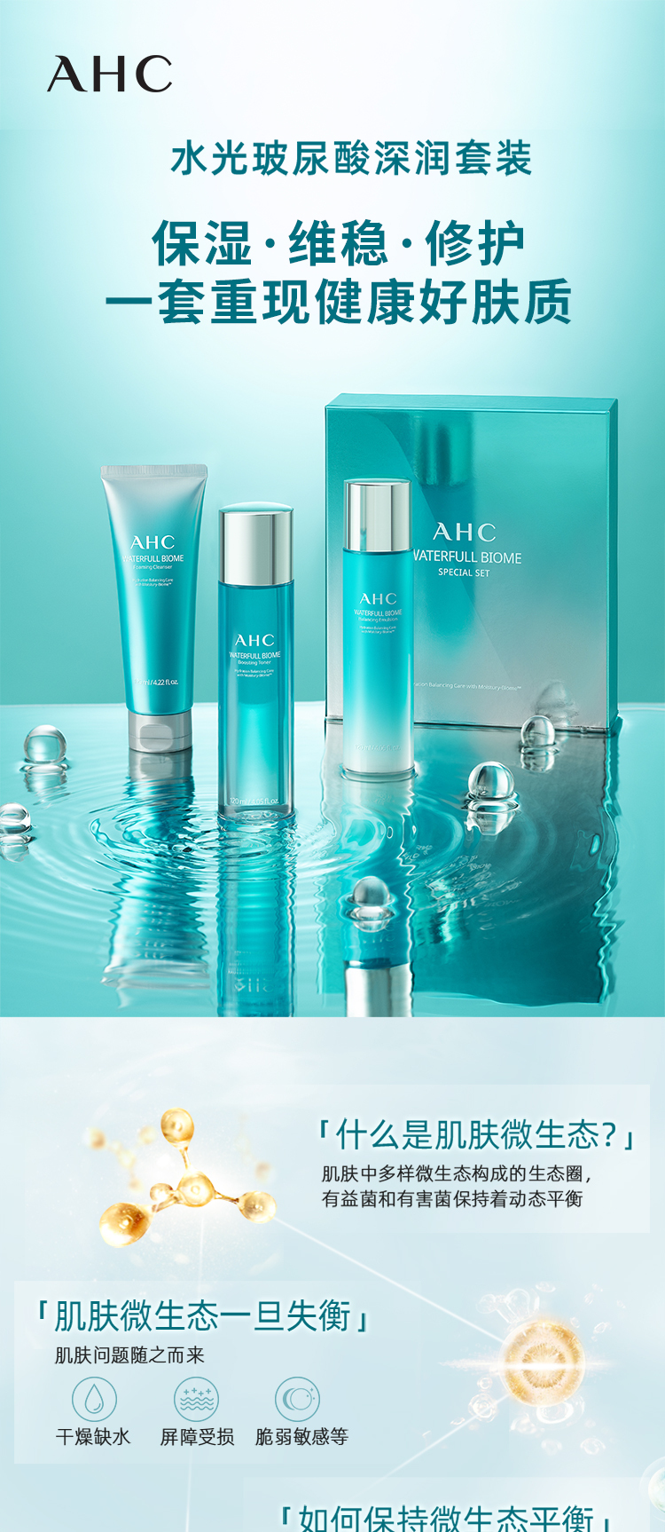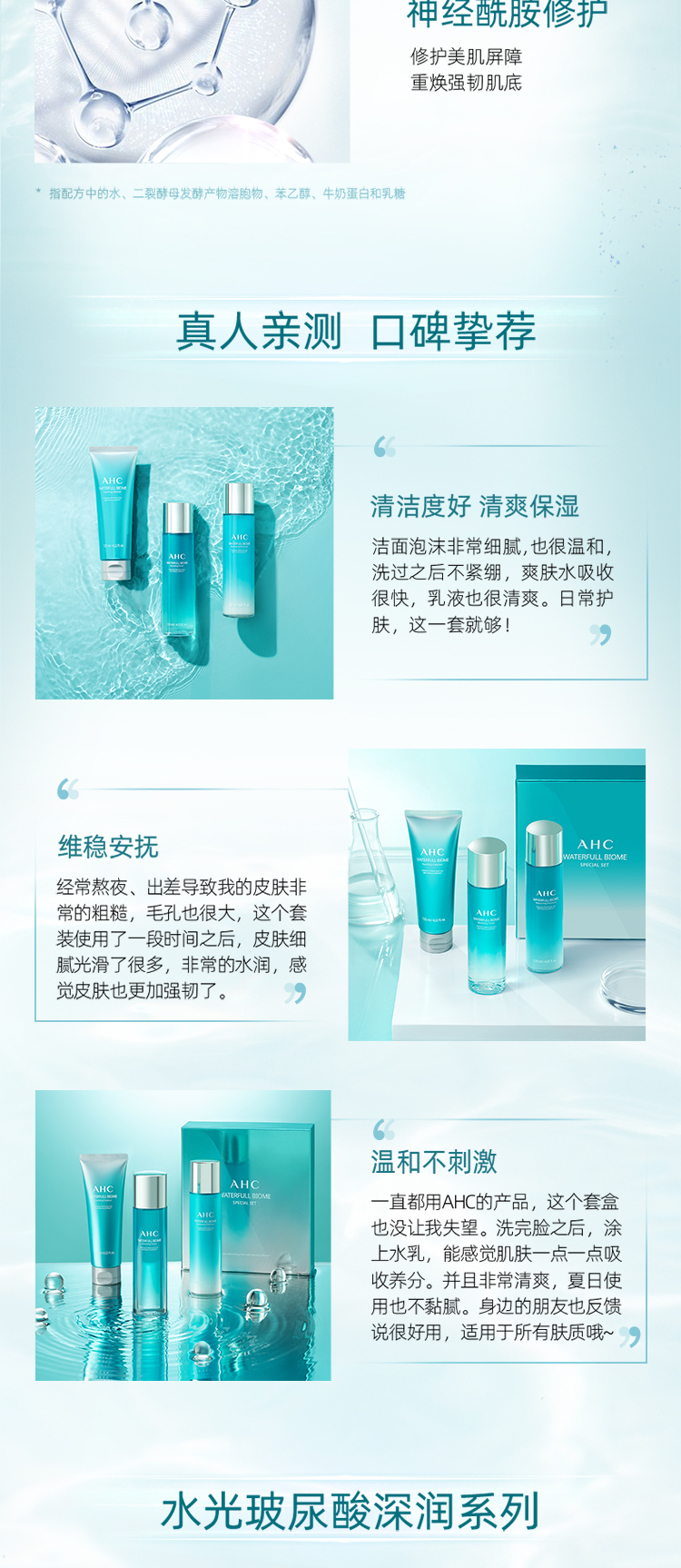 AHC爱和纯水光玻尿酸深润套装 125ml+120ml+120ml