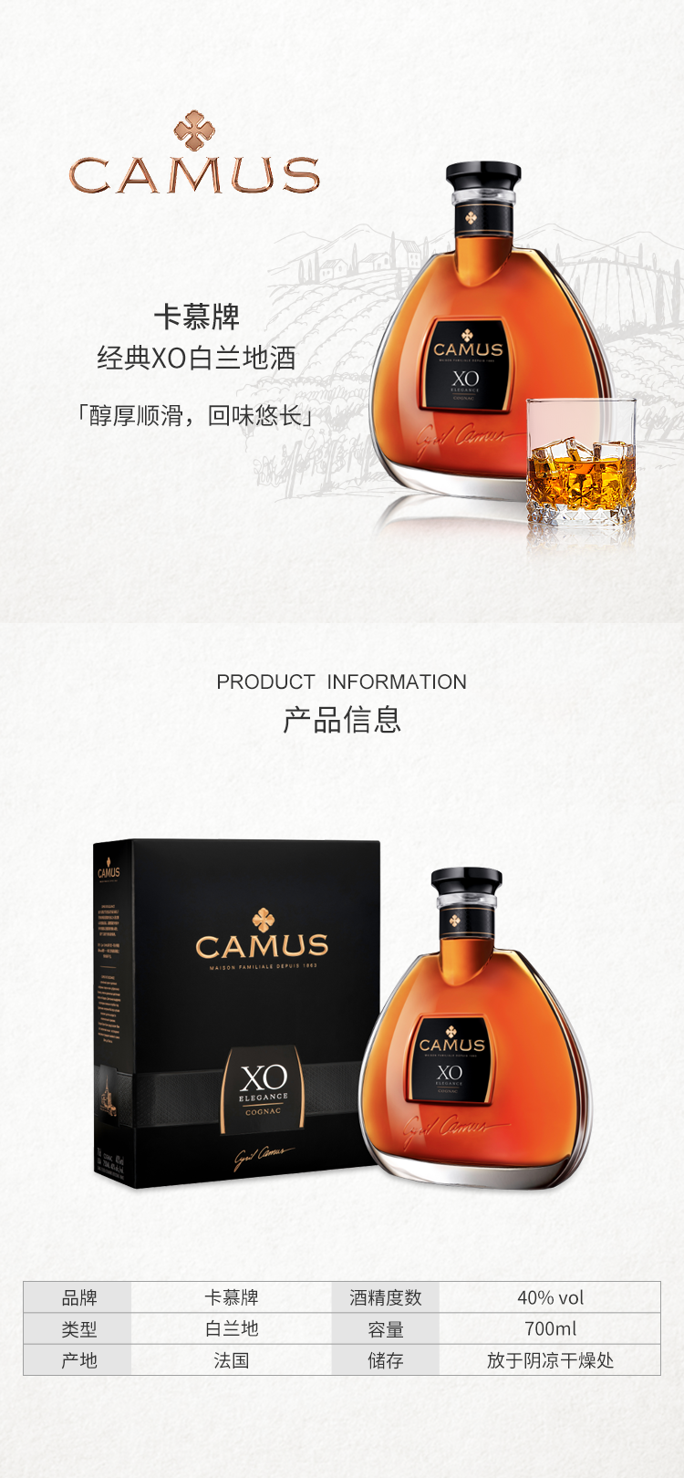 卡慕经典XO白兰地酒0.7L(40%) 700毫升/瓶