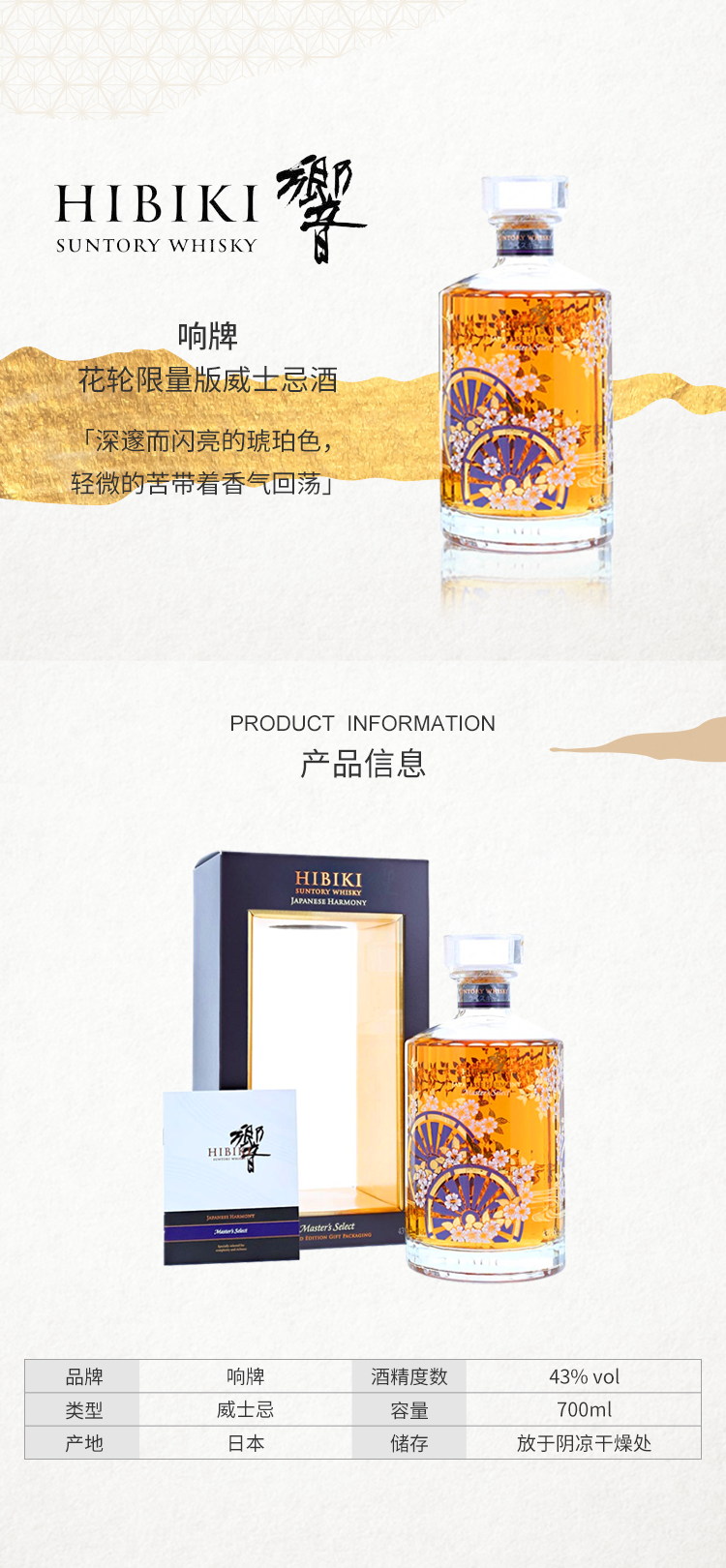 Hibiki響花轮限量版调和威士忌酒700ml(43%)
