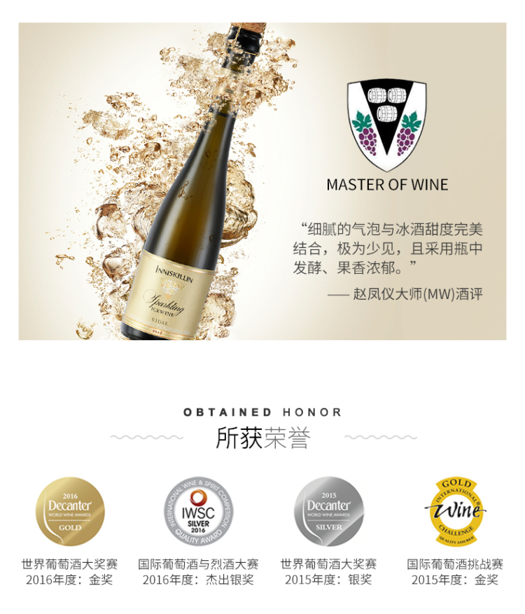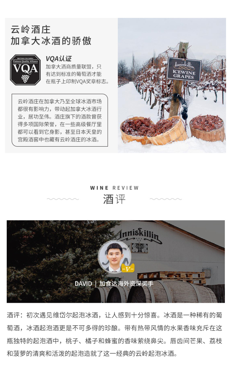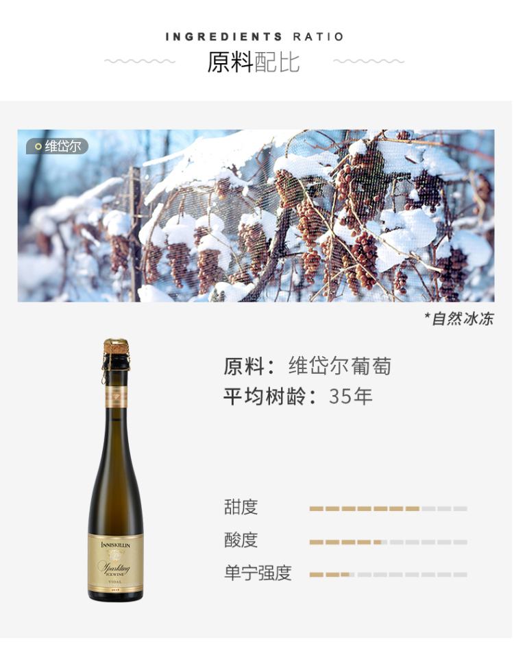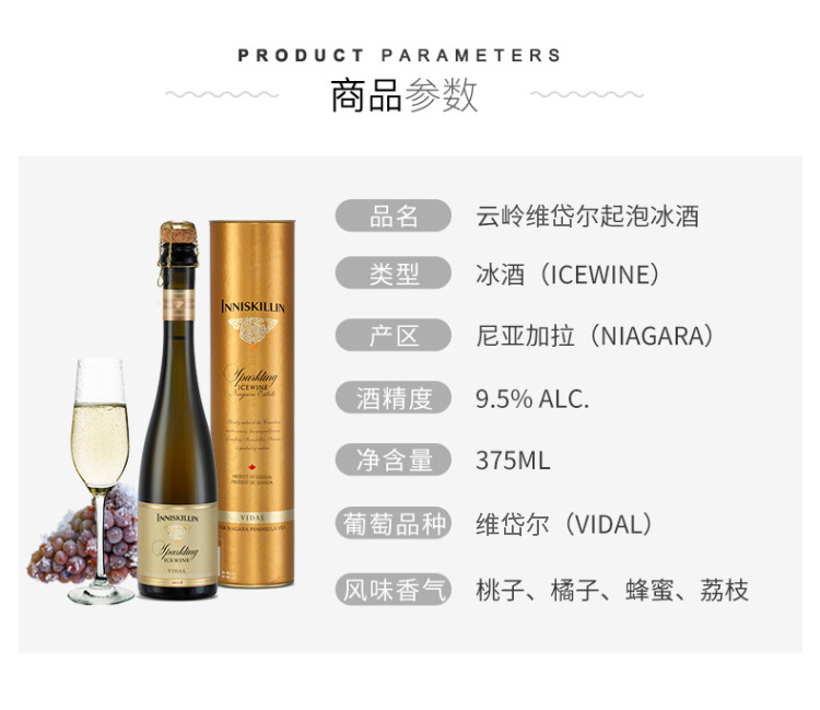 云岭维岱尔白葡萄气泡冰酒375ml(9.5%) 375毫升/瓶