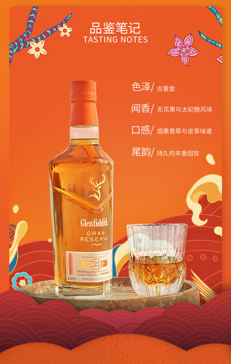 格兰菲迪21年单一麦芽威士忌酒700ml (43.2%)