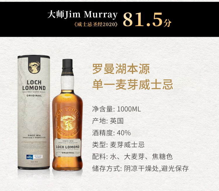 罗曼湖本源单一麦芽威士忌酒1L(40%) 1000毫升/瓶
