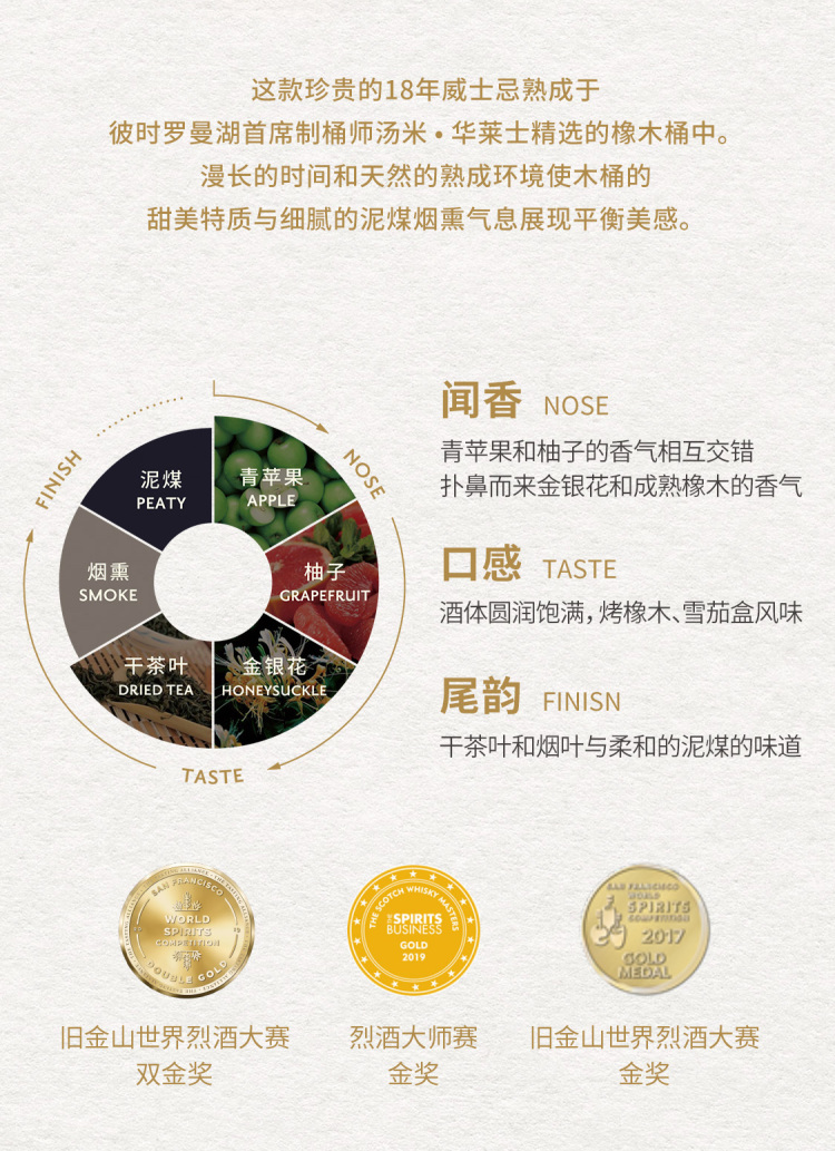 罗曼湖18年单一麦芽威士忌酒 1L(46%)