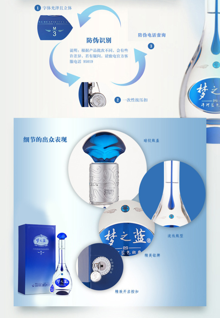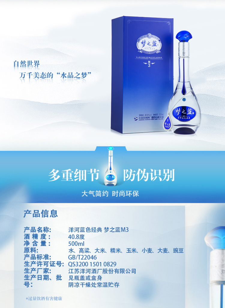 洋河40.8度蓝色经典梦3浓香型白酒500ml(40.8%)【出口版】