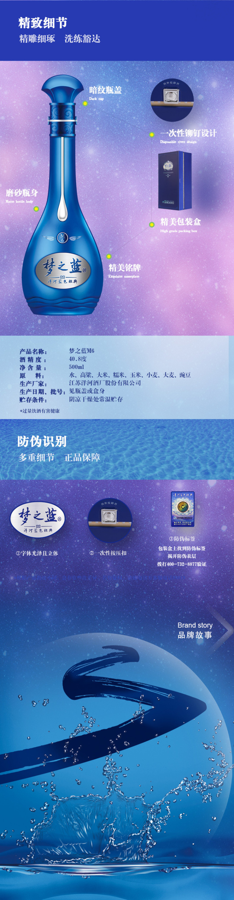 洋河40.8度蓝色经典梦6浓香型白酒500ml(40.8%)【出口版】