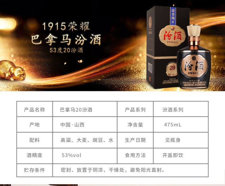 汾酒53度巴拿马20清香型白酒(53%)475ml