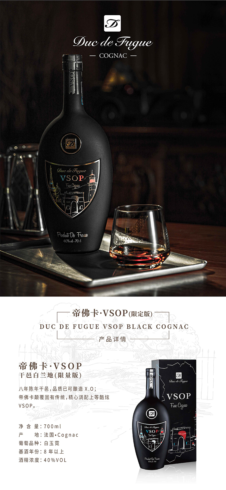 帝佛卡干邑白兰地VSOP酷炫700ml