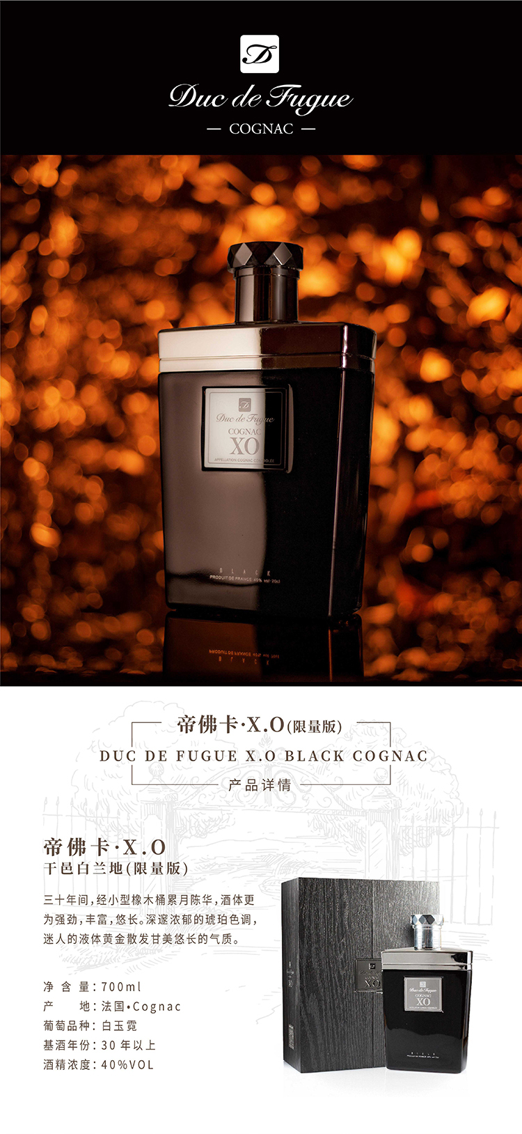 帝佛卡干邑白兰地晶韵XO700ML 700ml/瓶