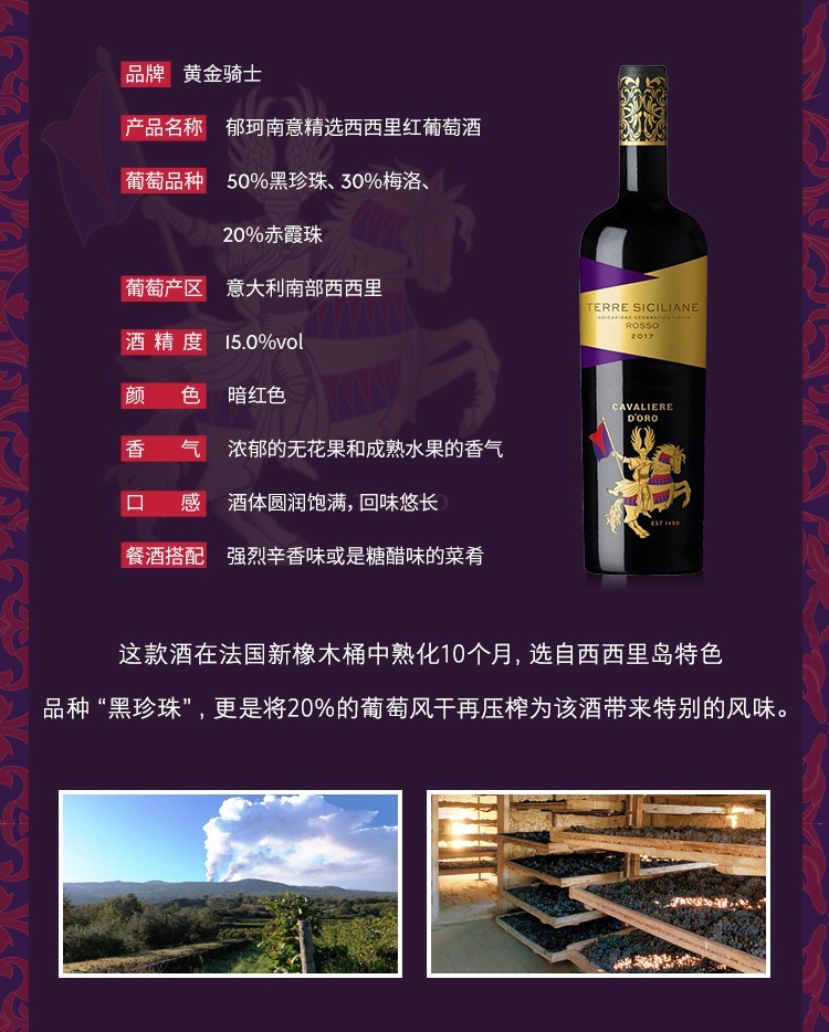 黄金骑士经典基安蒂珍藏红葡萄酒750ml Cavaliere d'Oro 750ml