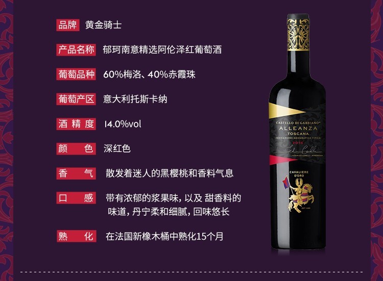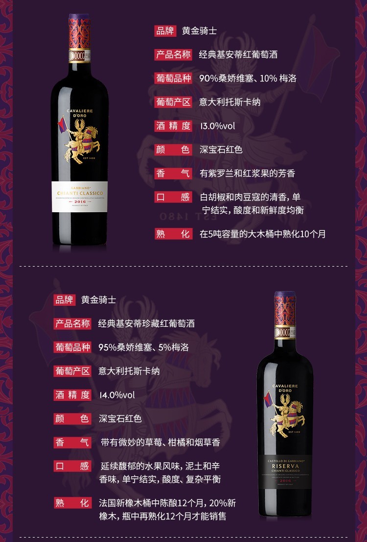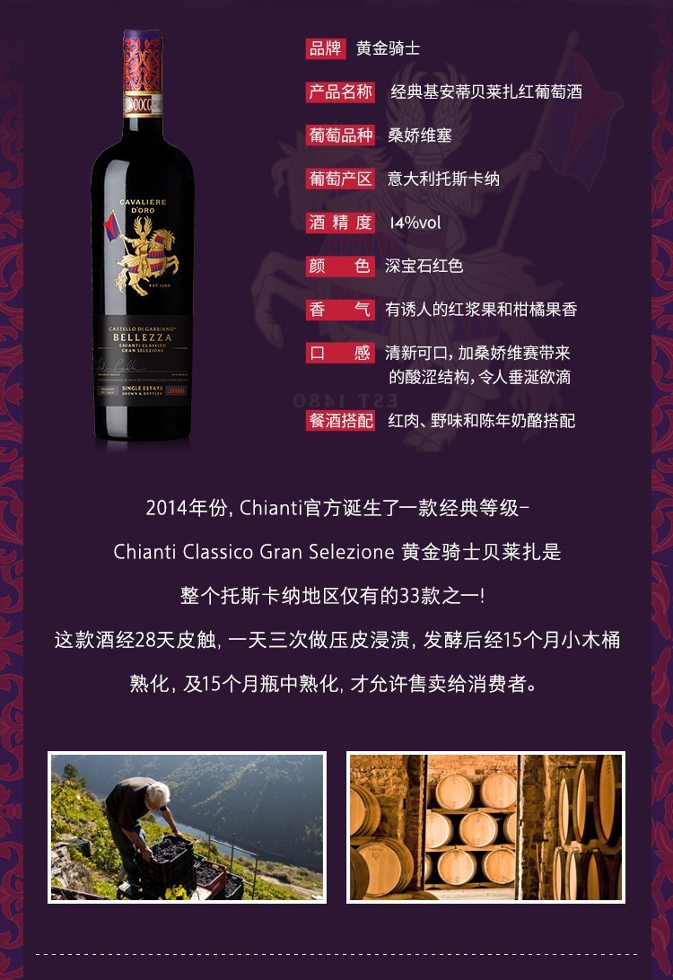 黄金骑士经典基安蒂珍藏红葡萄酒750ml Cavaliere d'Oro