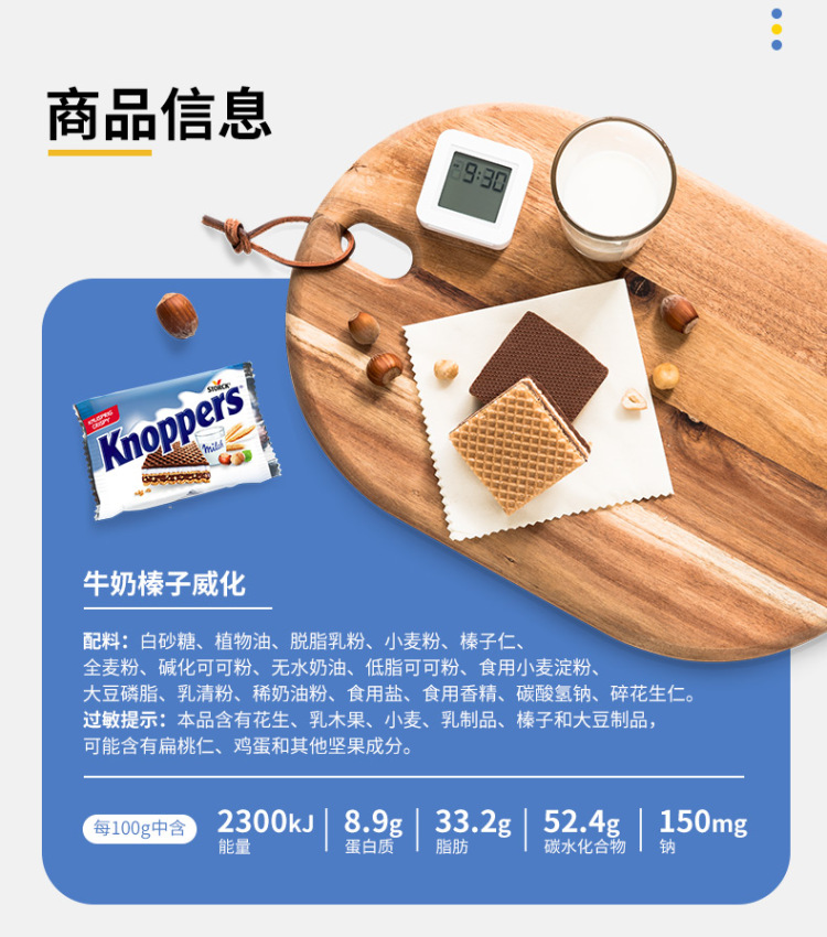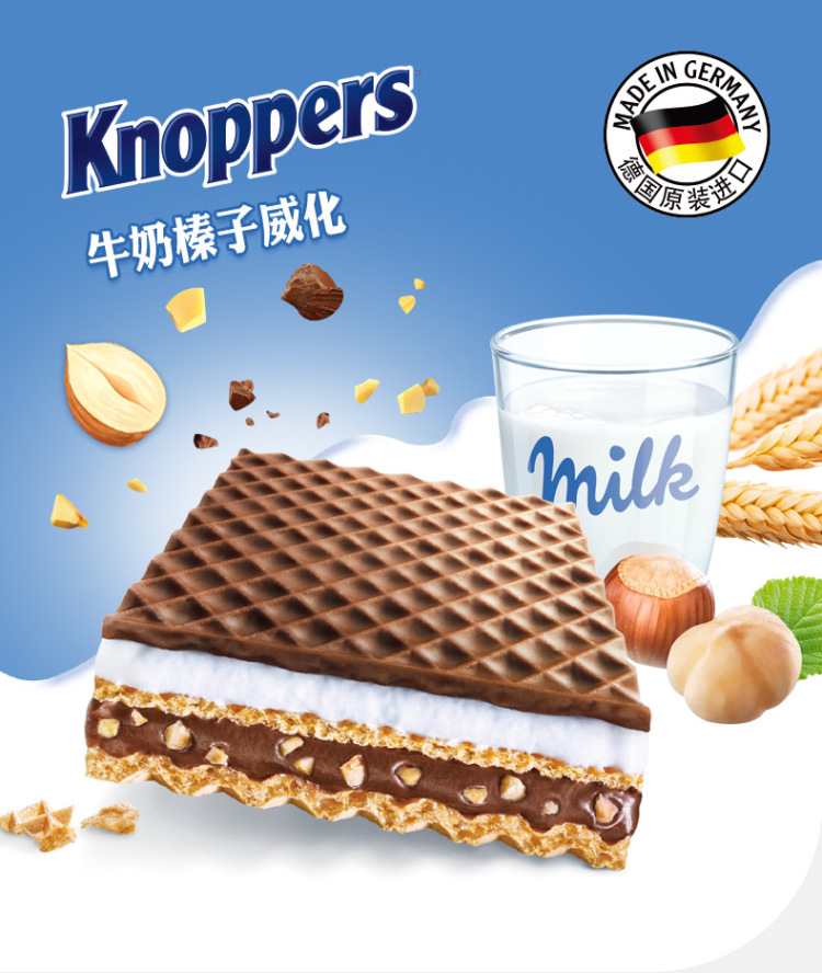 斯多克Knoppers牛奶榛子巧克力威化饼饼干