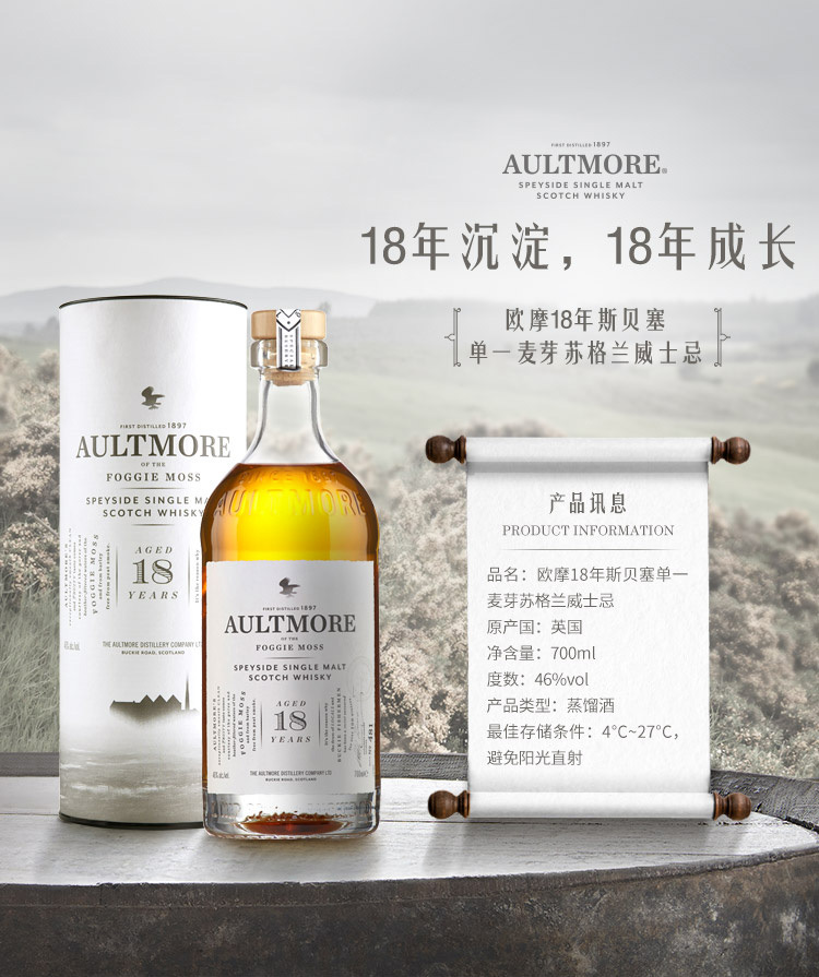 欧摩18年单一麦芽威士忌酒700ml(46%) 700毫升/瓶