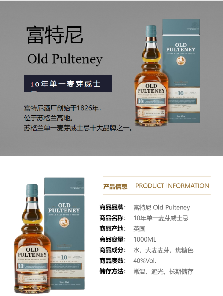 富特尼10年苏格兰单一麦芽威士忌酒1L(包装随机发出)(40%) 1000毫升/瓶