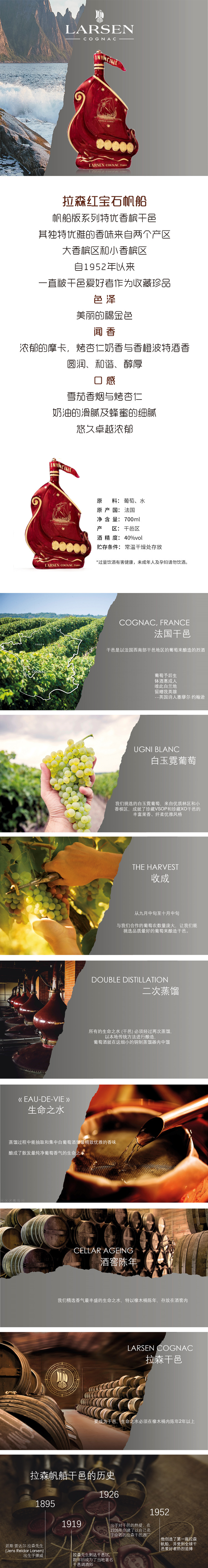 拉森红宝石帆船特优干邑白兰地酒700ml(40%) 700ML/瓶