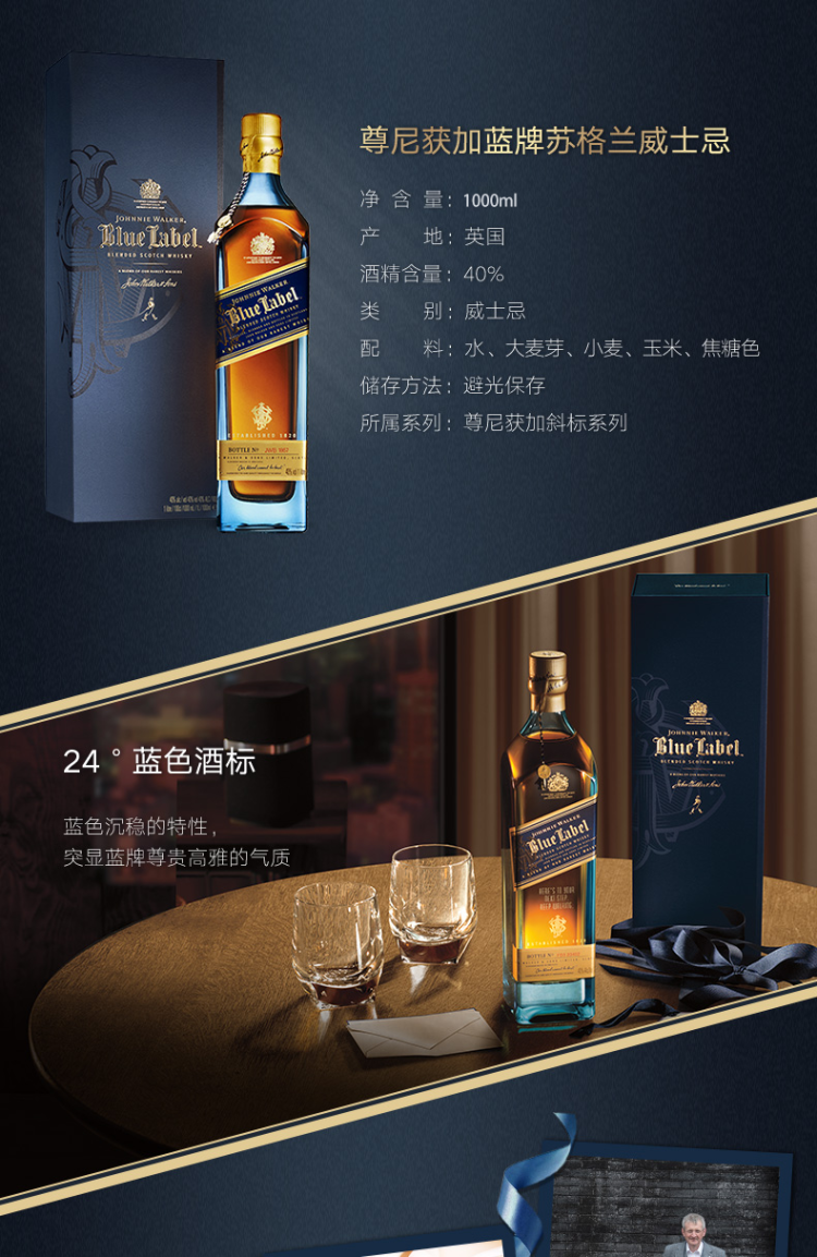 尊尼获加蓝牌精选调和威士忌酒1L(40%) 1000ML/瓶
