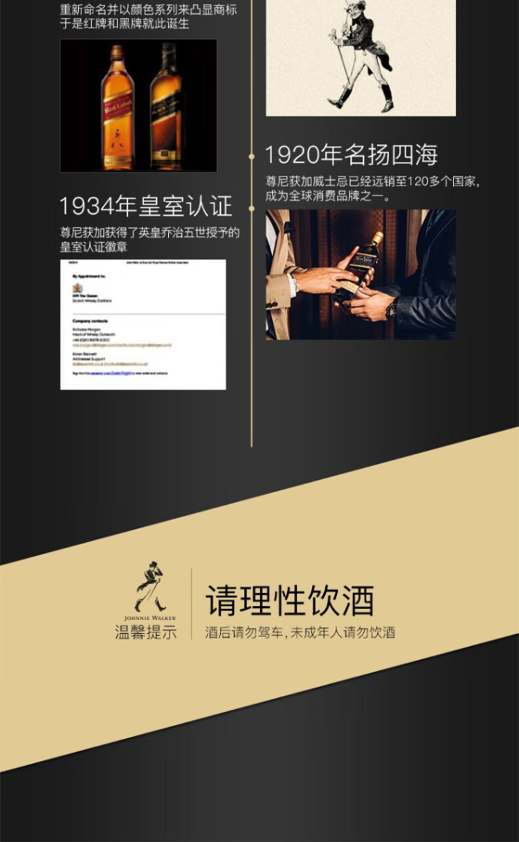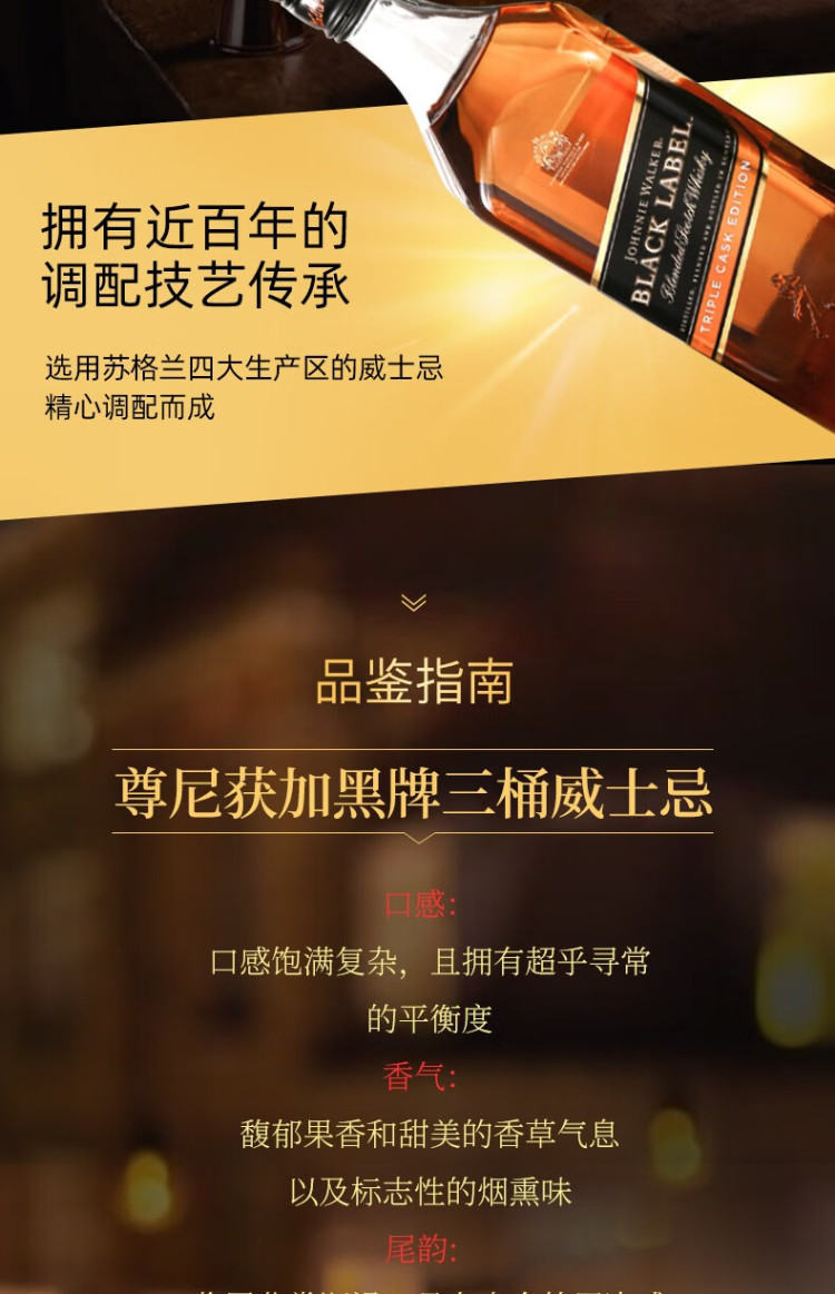 尊尼获加黑牌三桶限量版调和威士忌酒1000ml(40%) 1000ML/瓶