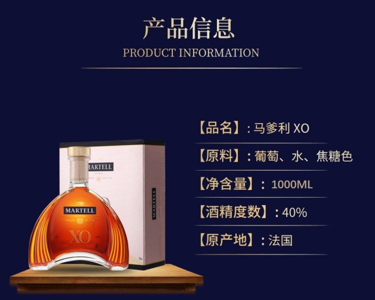 马爹利XO法国干邑白兰地酒1000ml(40%)