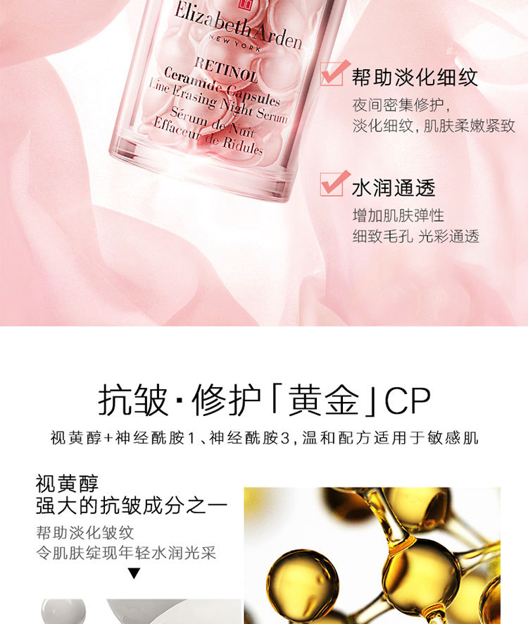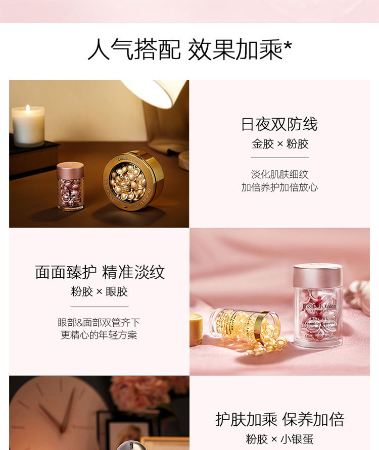 伊丽莎白雅顿粉胶淡斑胶囊护肤补水保夜间修护次抛A醇精华30粒