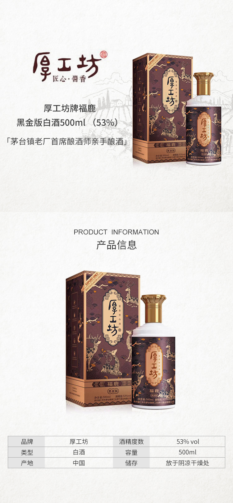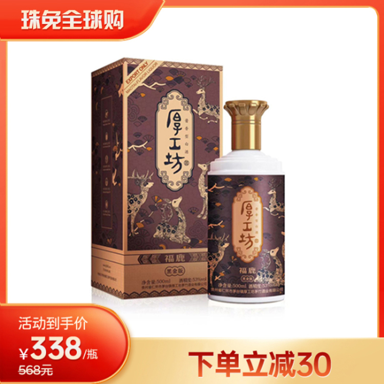 厚工坊福鹿黑金版酱香型白酒500ml (53%)【出口版】