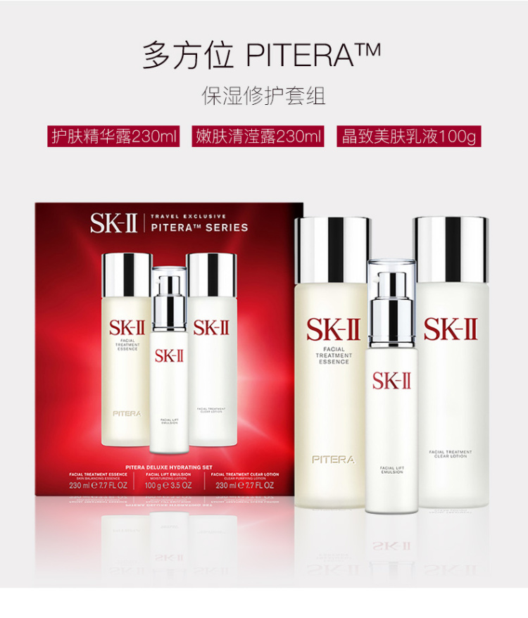 SK-II多方位PITERA保湿修护礼盒套装 神仙水230ML+清莹露230ML+美肤乳液100G
