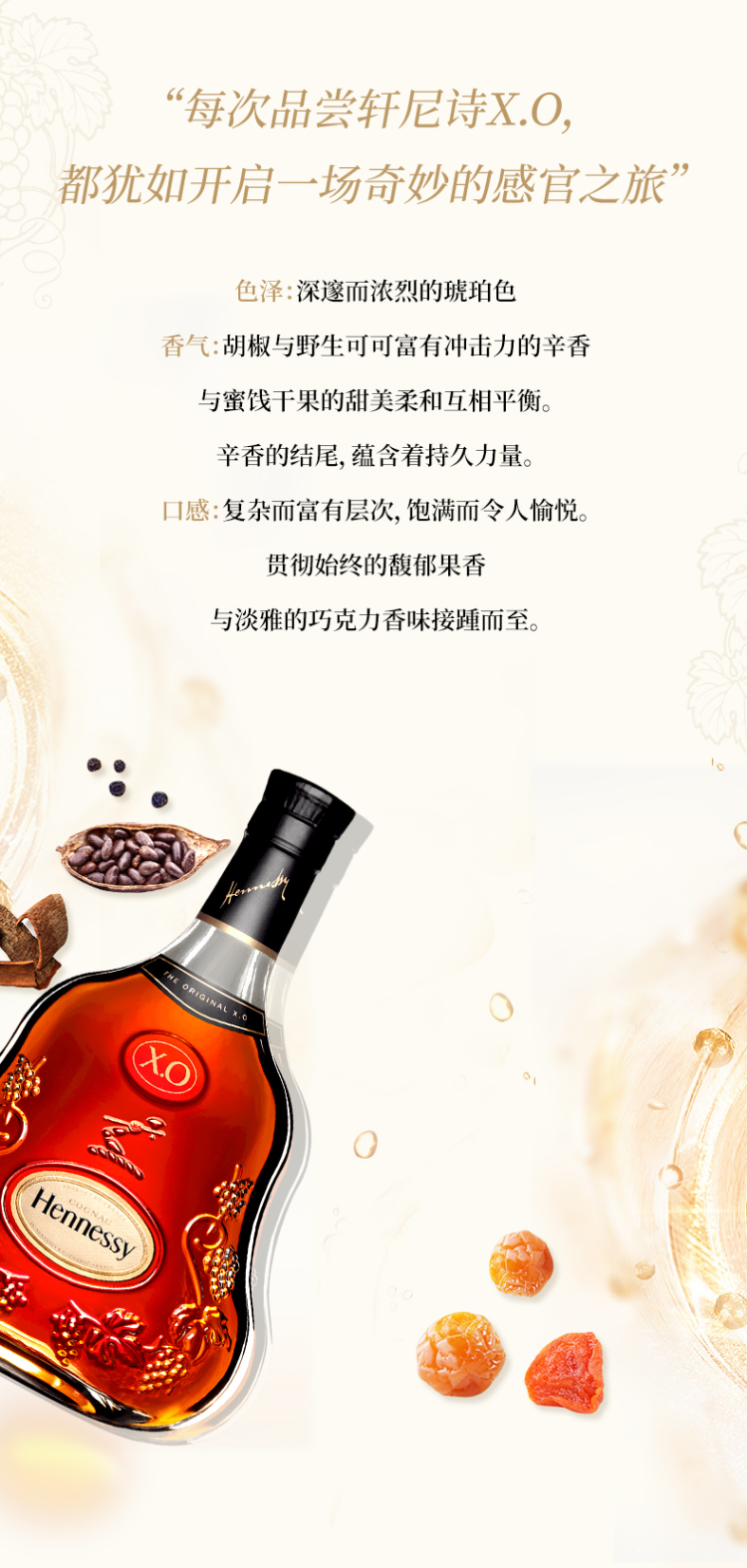 轩尼诗XO干邑白兰地酒1000ml(40%) 1000毫升/瓶