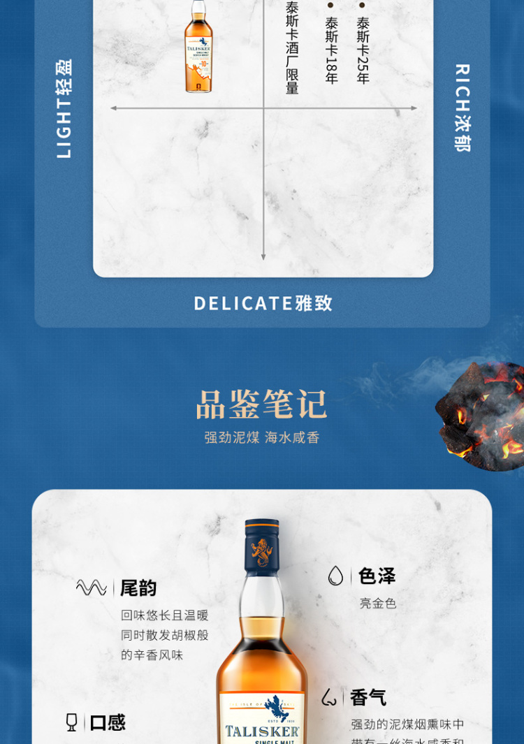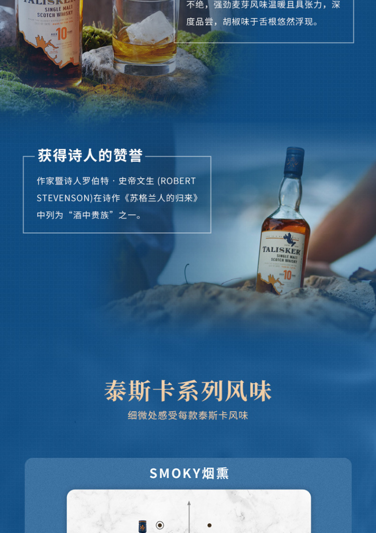泰斯卡风暴单一麦芽苏格兰威士忌烈酒烟熏 帝亚吉欧Talisker泰斯卡10年70