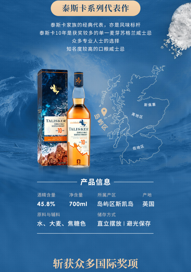 泰斯卡10年单一麦芽苏格兰威士忌原装进口洋酒正品烈酒Talisker