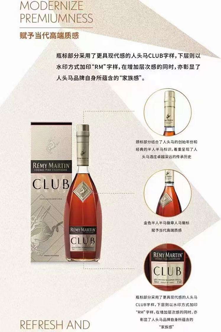 人头马特级CLUB干邑白兰地酒700ml(新老包装随机发货)40%