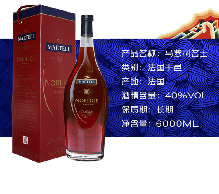 马爹利名士干邑白兰地酒 6L(40%) 6000ml/瓶