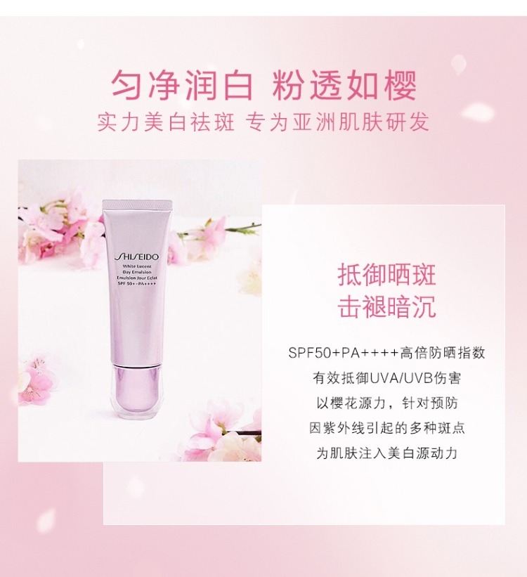 资生堂光透耀白柔肤乳防晒霜SPF50+/PA++++ 50ml(有效期至2026/3/7)