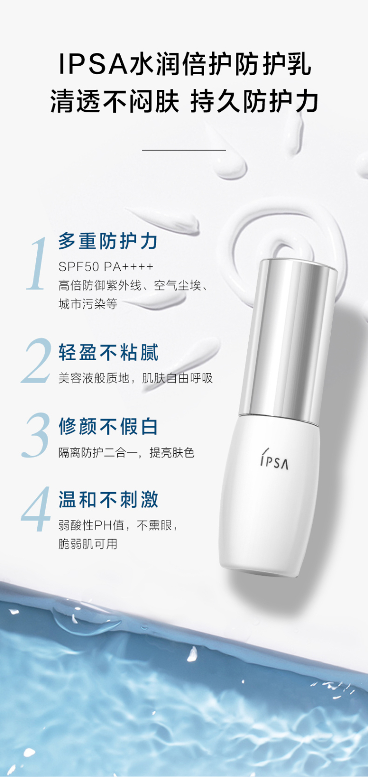 (特卖商品)IPSA茵芙莎水润倍护防晒日乳OP SPF50PA++++ 30ml/支(有效期至2025/8/29)
