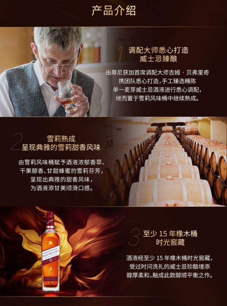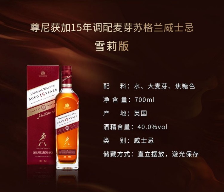 【国行】尊尼获加15年调配麦芽威士忌酒雪梨版礼盒 700ml 700ml/瓶