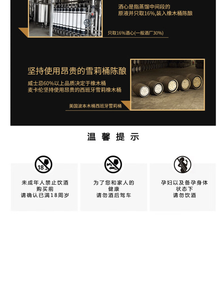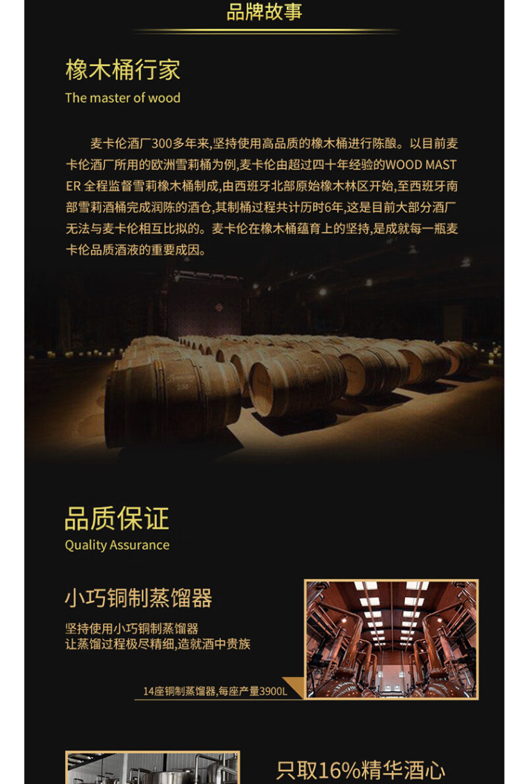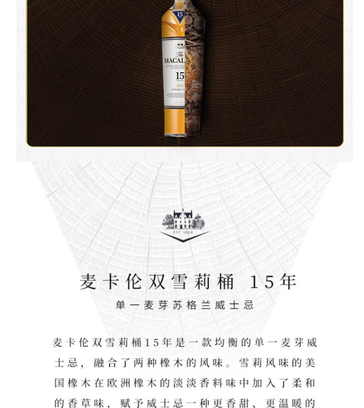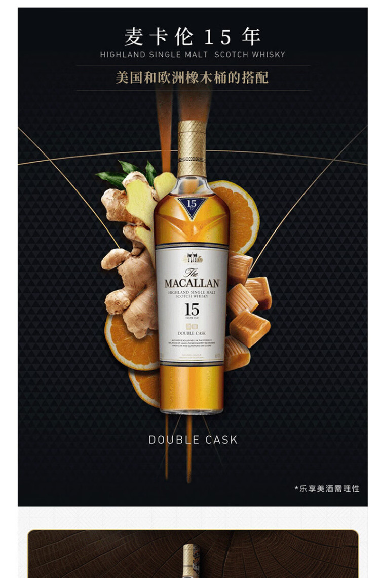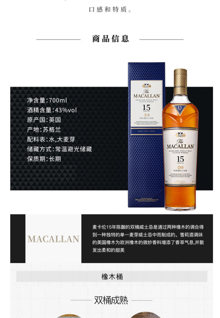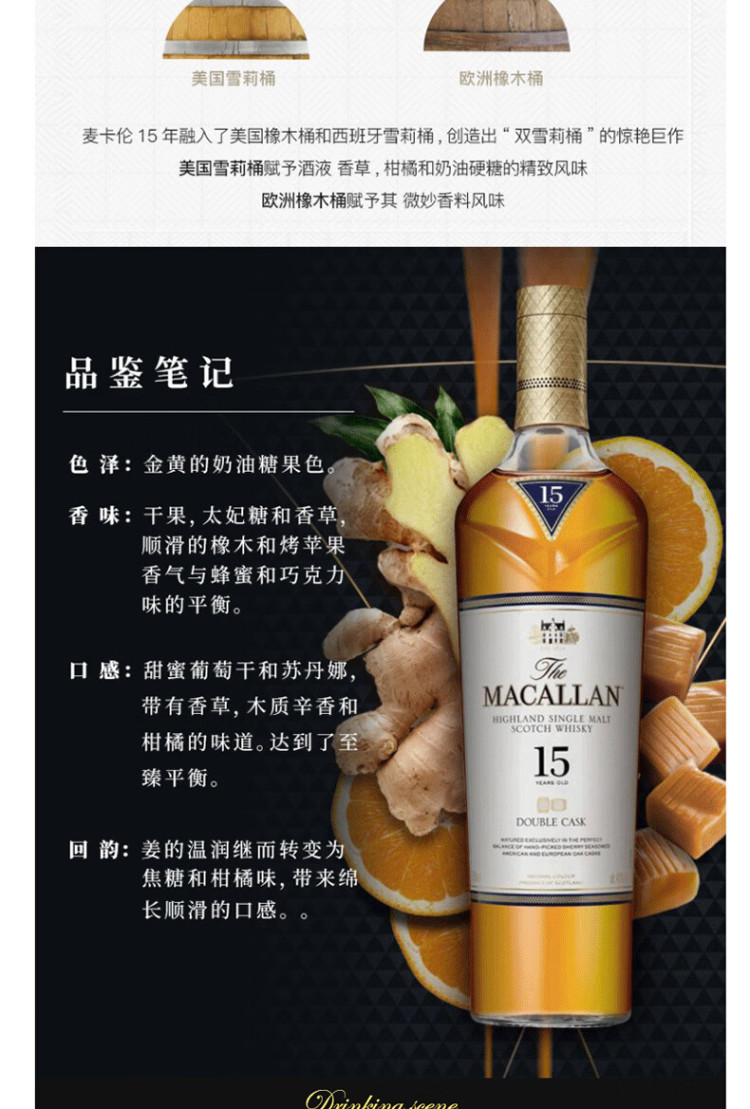 【国行】麦卡伦蓝钻双雪莉桶15年单一麦芽苏格兰威士忌酒 700ml(43%)