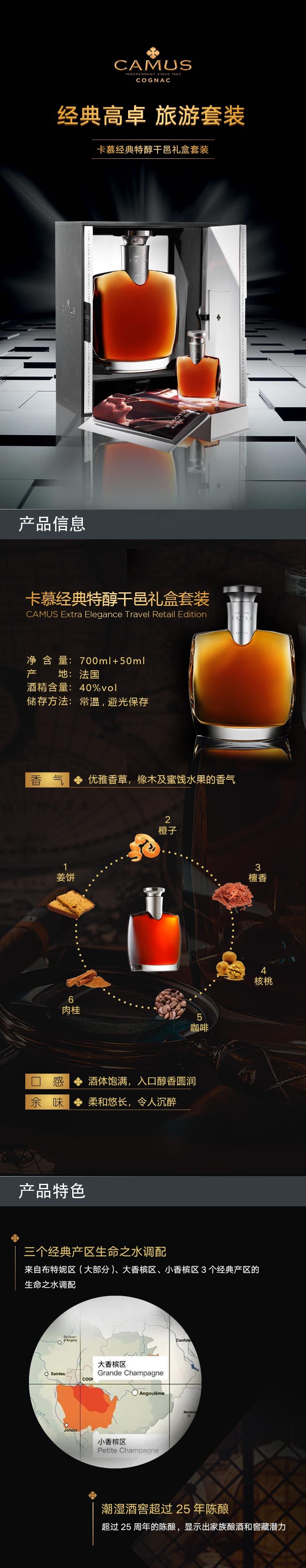卡慕经典特醇干邑白兰地酒礼盒套装(40%)700ml+50ml