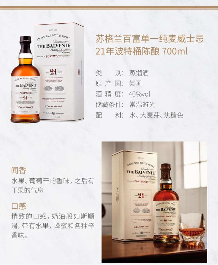 百富21年波特桶单一麦芽苏格兰威士忌酒 700ml 700ml/瓶