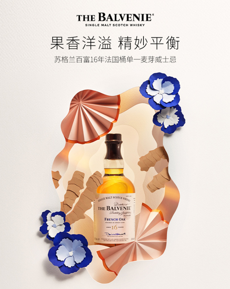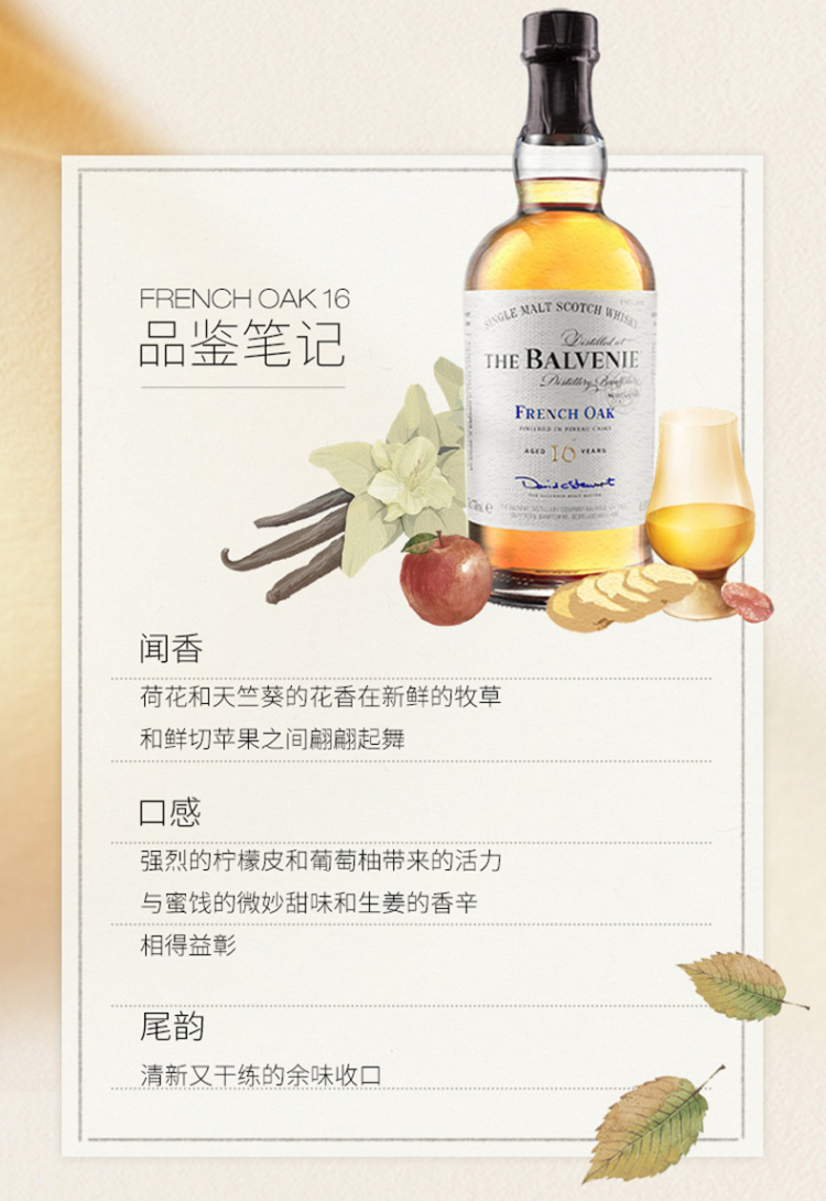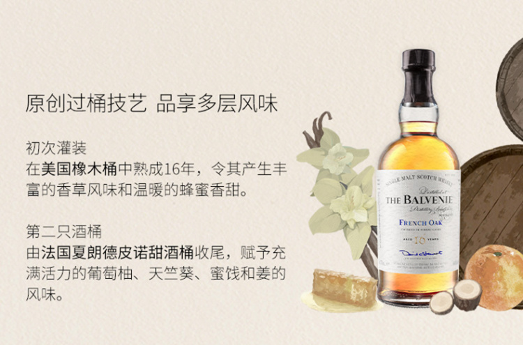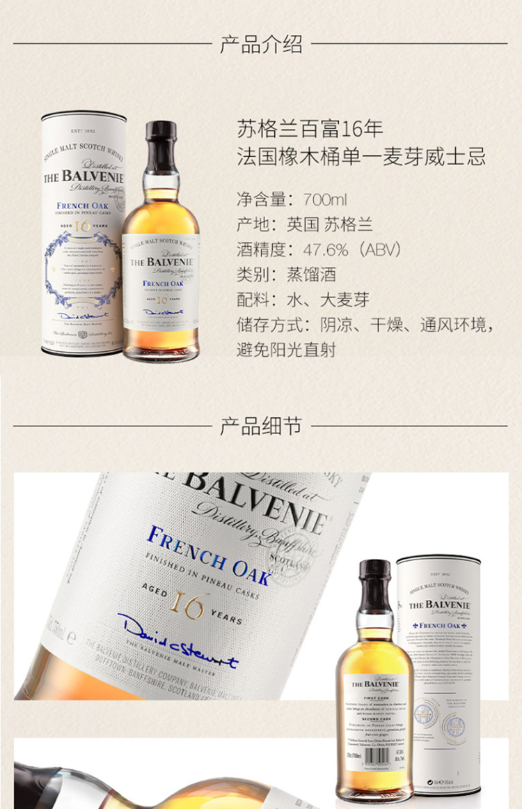 百富16年法国桶单一麦芽苏格兰威士忌酒700ml
