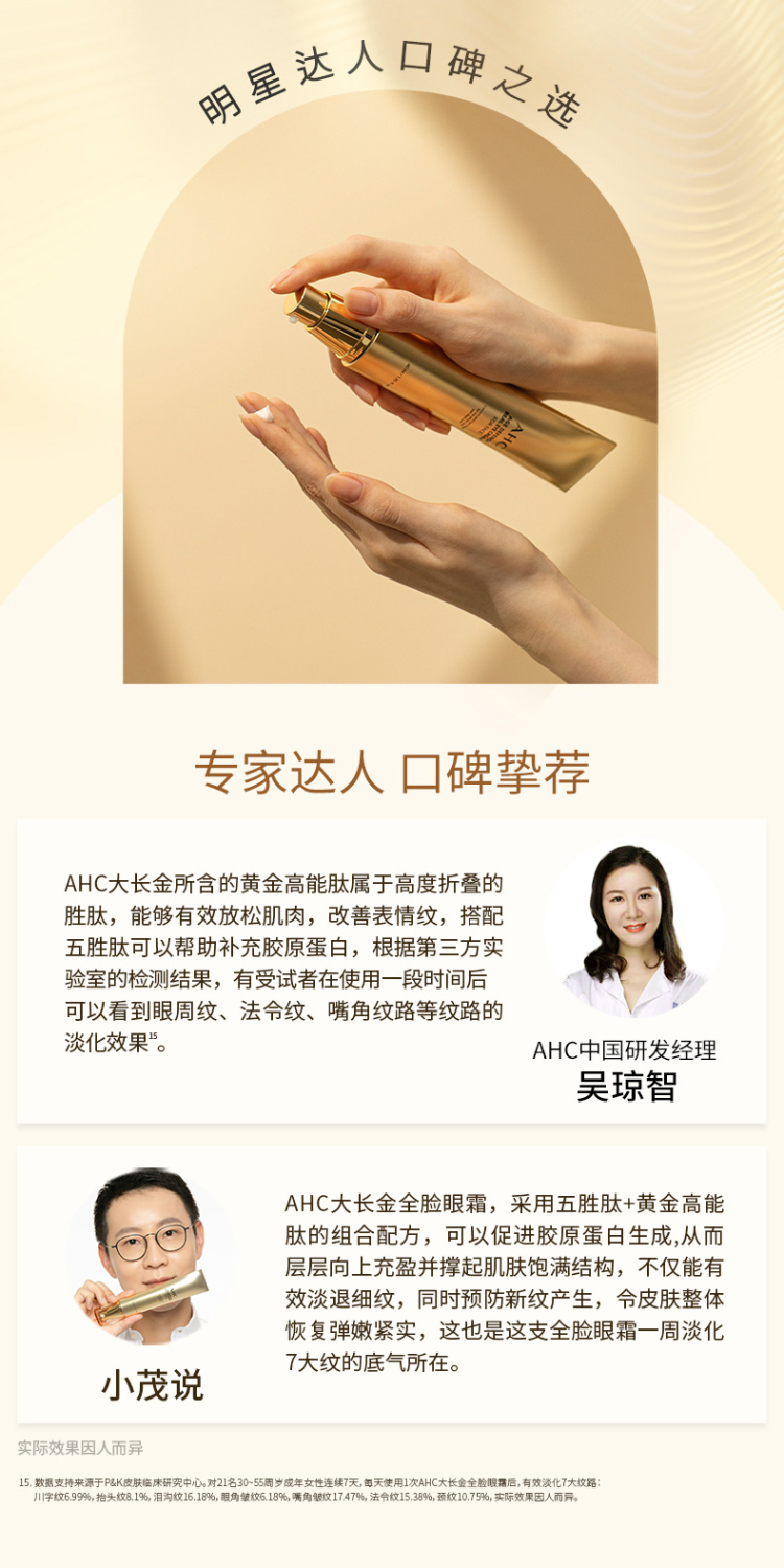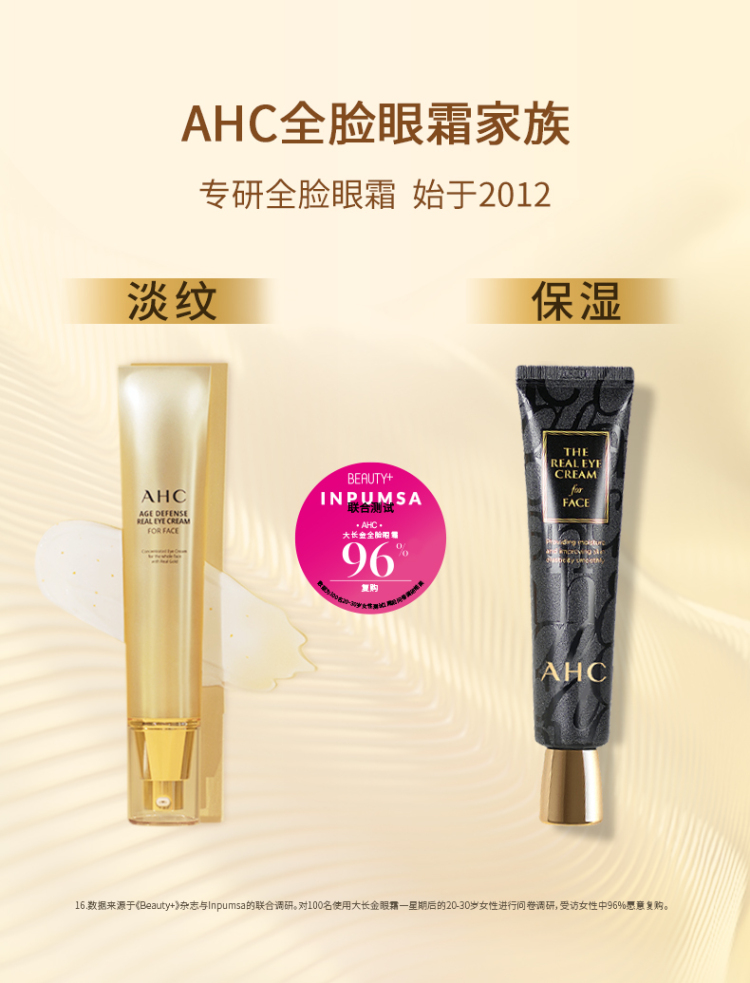 AHC大长金金熨斗补水保湿淡纹熬夜修护眼霜精华双支