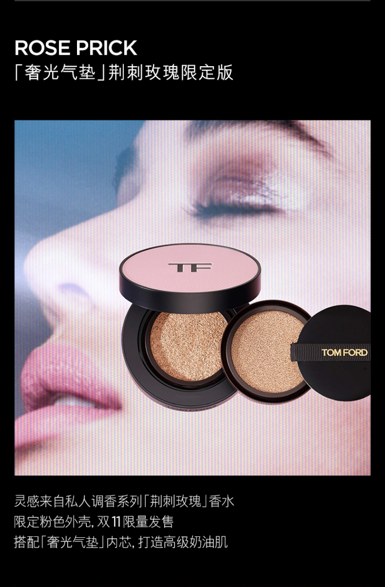 (特卖商品)TF汤姆福特奢金柔光气垫粉底液套装SPF45/PA+++#0.4玫瑰陶瓷 冷调一白(正装+替换装+粉扑)12G*2/套(有效期至2024/12/01)