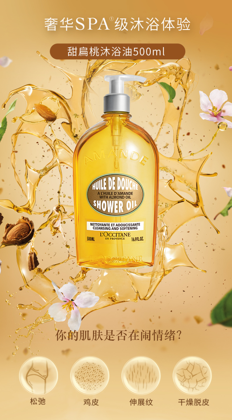 欧舒丹甜扁桃紧致沐浴油 500ML 500ML/支