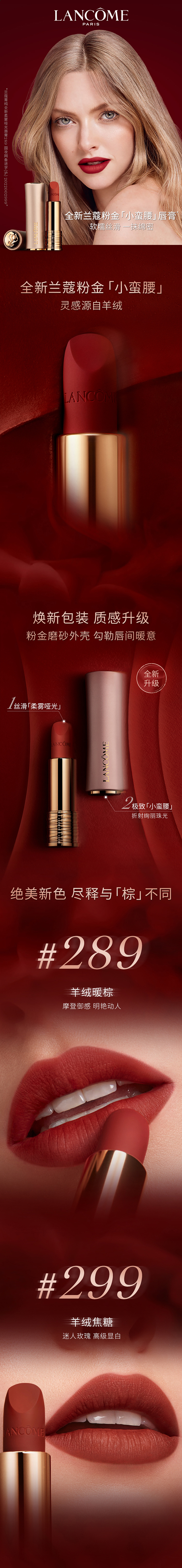 (特卖商品)兰蔻小蛮腰菁纯柔雾哑光粉金唇膏 #289羊绒暖棕 3.4G(有效期至2026/8/1) 3.4G/支