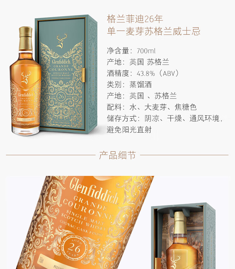 格兰菲迪26年单一麦芽苏格兰威士忌酒700ml