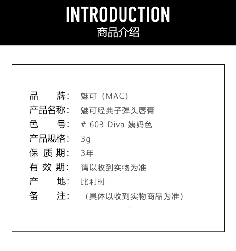 MAC魅可子弹头经典柔感哑光唇膏02 #603 DIVA 姨妈色 3G 3G/件