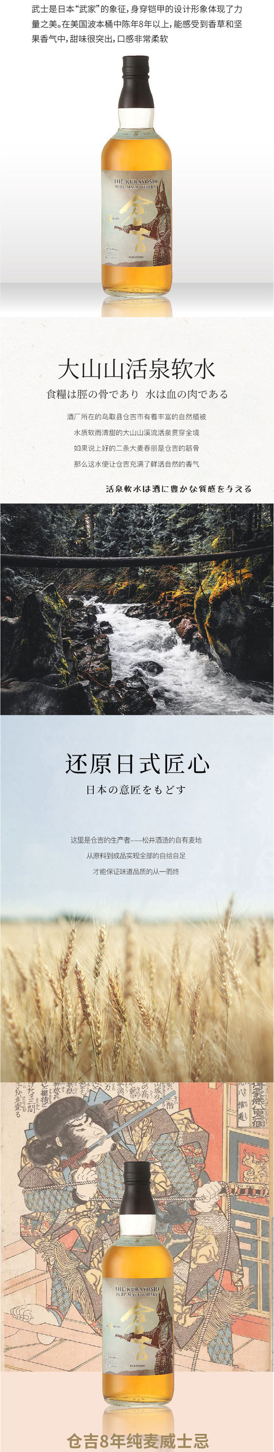 仓吉KURAYOSHI8年纯麦威士忌酒700ml(43%) 700ml/瓶