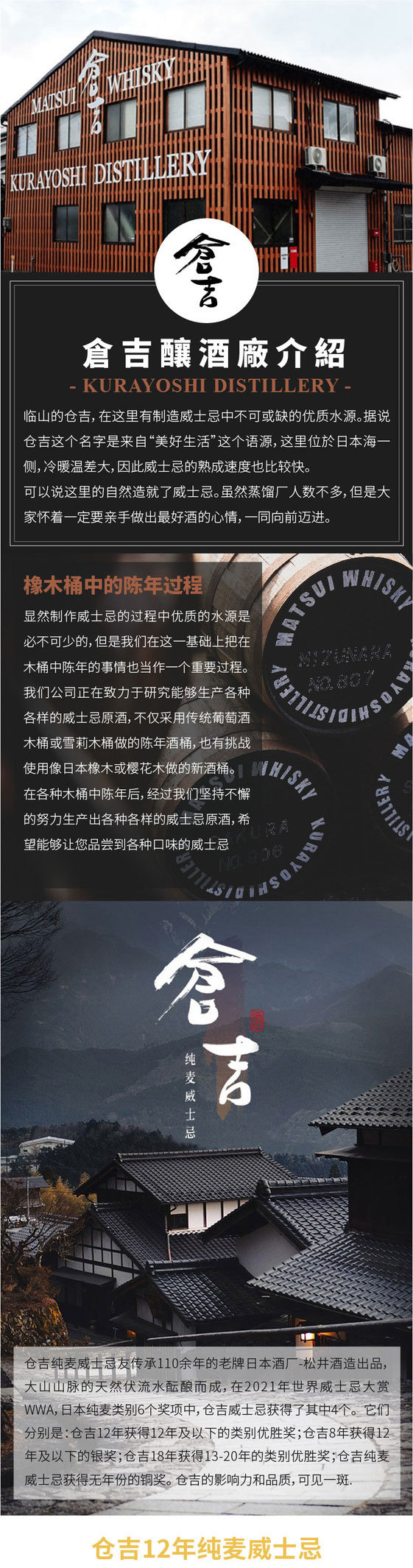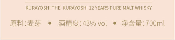 仓吉KURAYOSHI12年纯麦威士忌酒700ml(43%) 700ML/瓶