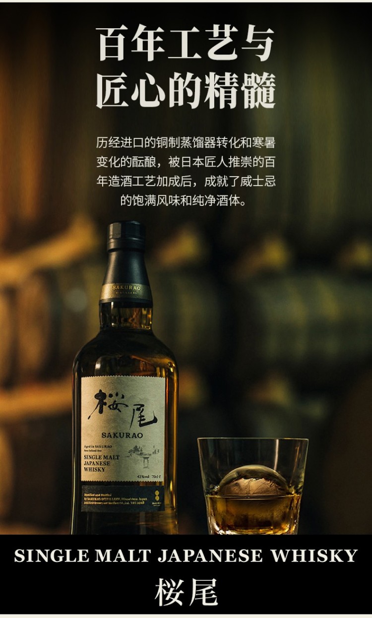 樱尾日本单一麦芽威士忌(43%) 700ml
