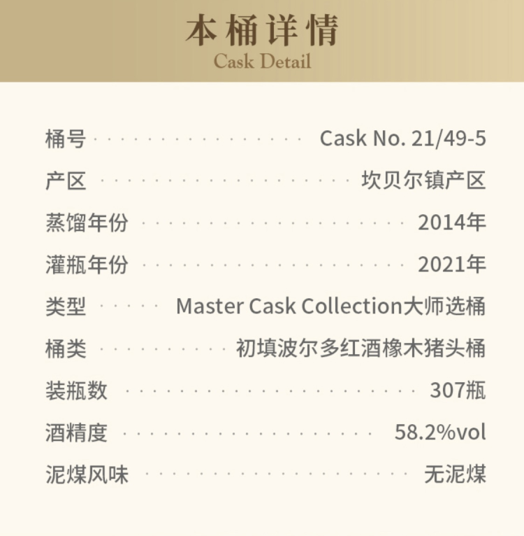 品饮提示:本瓶为原桶桶强,饕客级玩家自可随意,刚接触威士忌的爱好者建议加几滴纯净水后饮用。