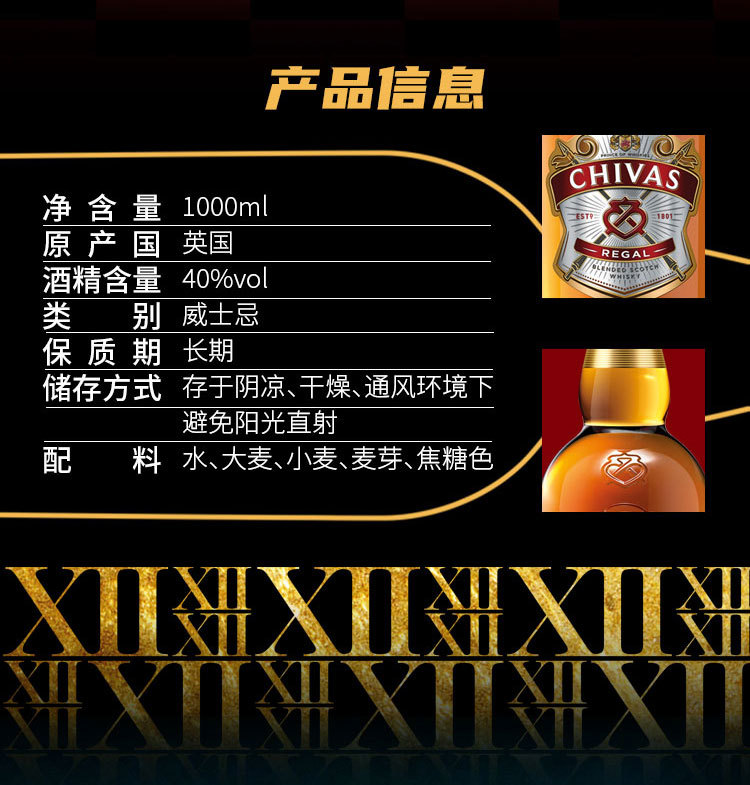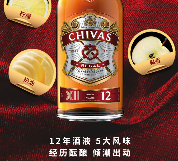 芝华士12年苏格兰威士忌酒1000ml(40%) 1000ml/瓶
