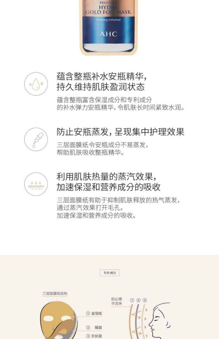 (特卖商品)AHC爱和纯臻致玻尿酸面膜(黄金款)套装 25g*50片(有效期至2024/11/08)