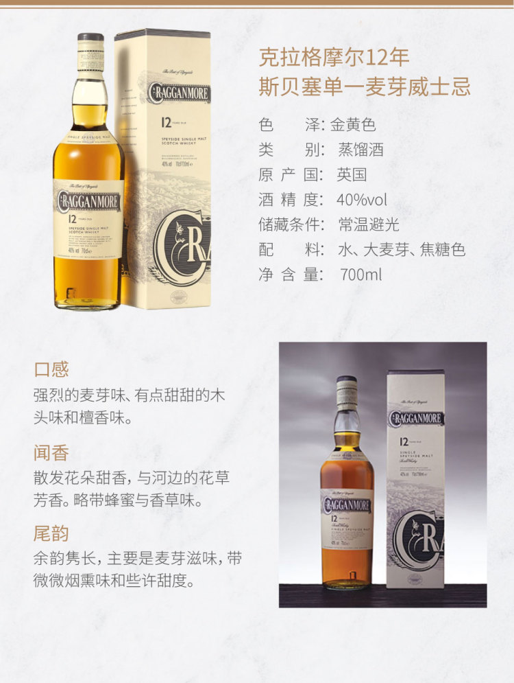 【国行】克拉格摩尔12年斯贝塞威士忌酒 700ml*6 700ml/瓶*6