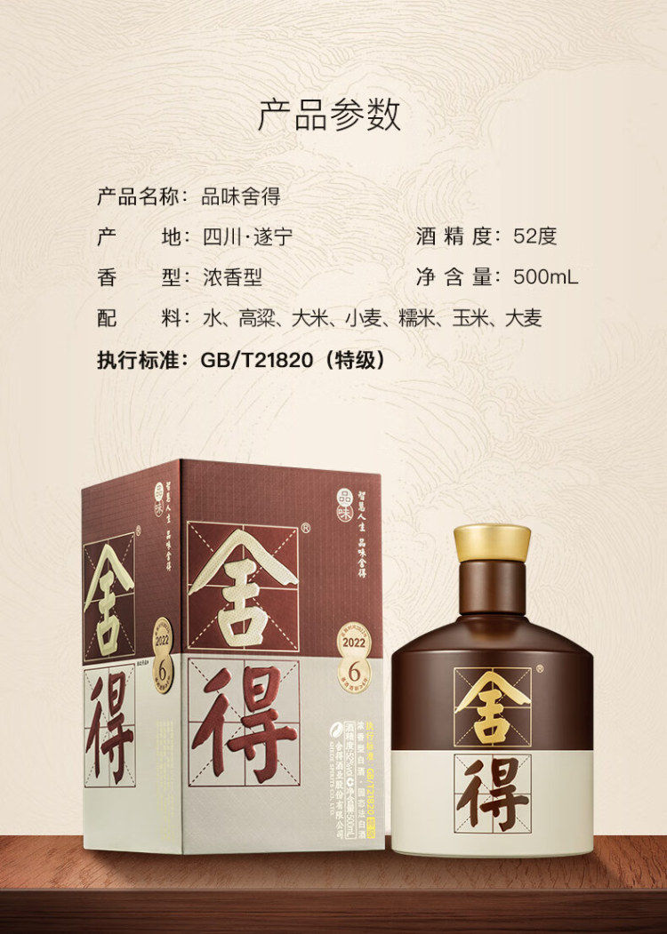 舍得52度品味浓香型白酒500ml(52%)【出口版】 500ML/瓶